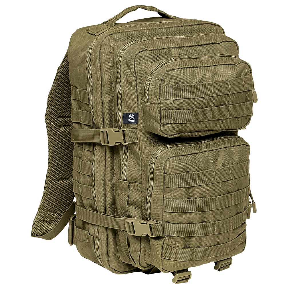 US Rucksack von Brandit mit einem Volumen von ca. 40 Liter, MOLLE-System, gepolsterte Schultergurte, Fronttasche mit Organizer, verstellbarer Hüftgurt, seitliche Kompressionsgurte.